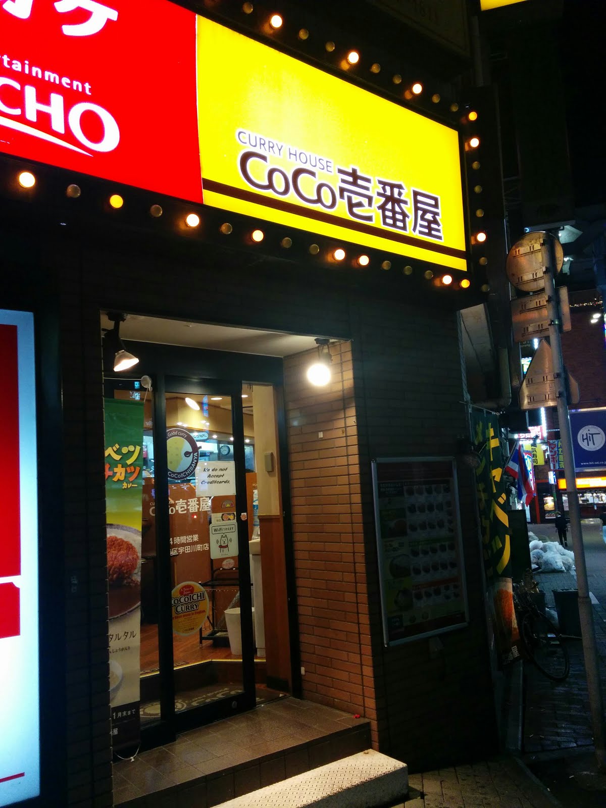 CoCo Ichibanya! ร้านเล็กๆ แต่เปิด 24 ชม. แหละ! ไม่มีปลั้ก แต่เห็นคนนึงหลับอยู่บนโซฟาเห็นๆ เพราะงั้นเราเข้าไปทำงานคงไม่เป็นไรแน่ๆ เอาล่ะ!